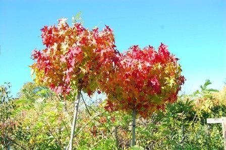 Der rundeste unter den Kugelbäumen. Das Jahr über Dunkelgrün und im Herbst aufregend rot bis pink, so überzeugt der Kugelamberbaum. Je niedriger der pH-Wert im Boden, umso kräftiger fällt die Herbstfärbung aus.